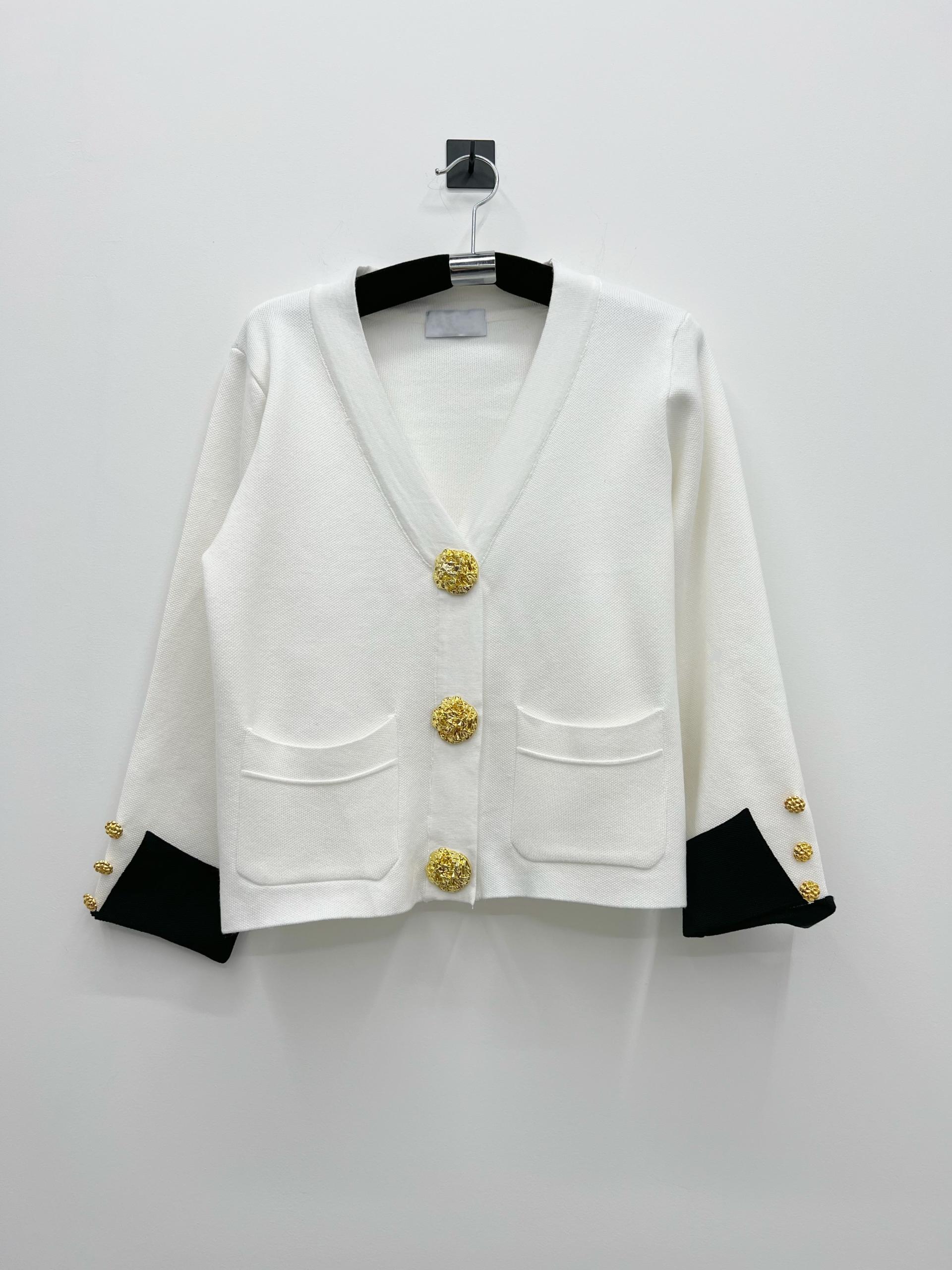 금장 단추 가디건 커프스 가디건 소매 금장 골드 버튼 가디건 탑 고급 럭셔리 선물 배색 가디건