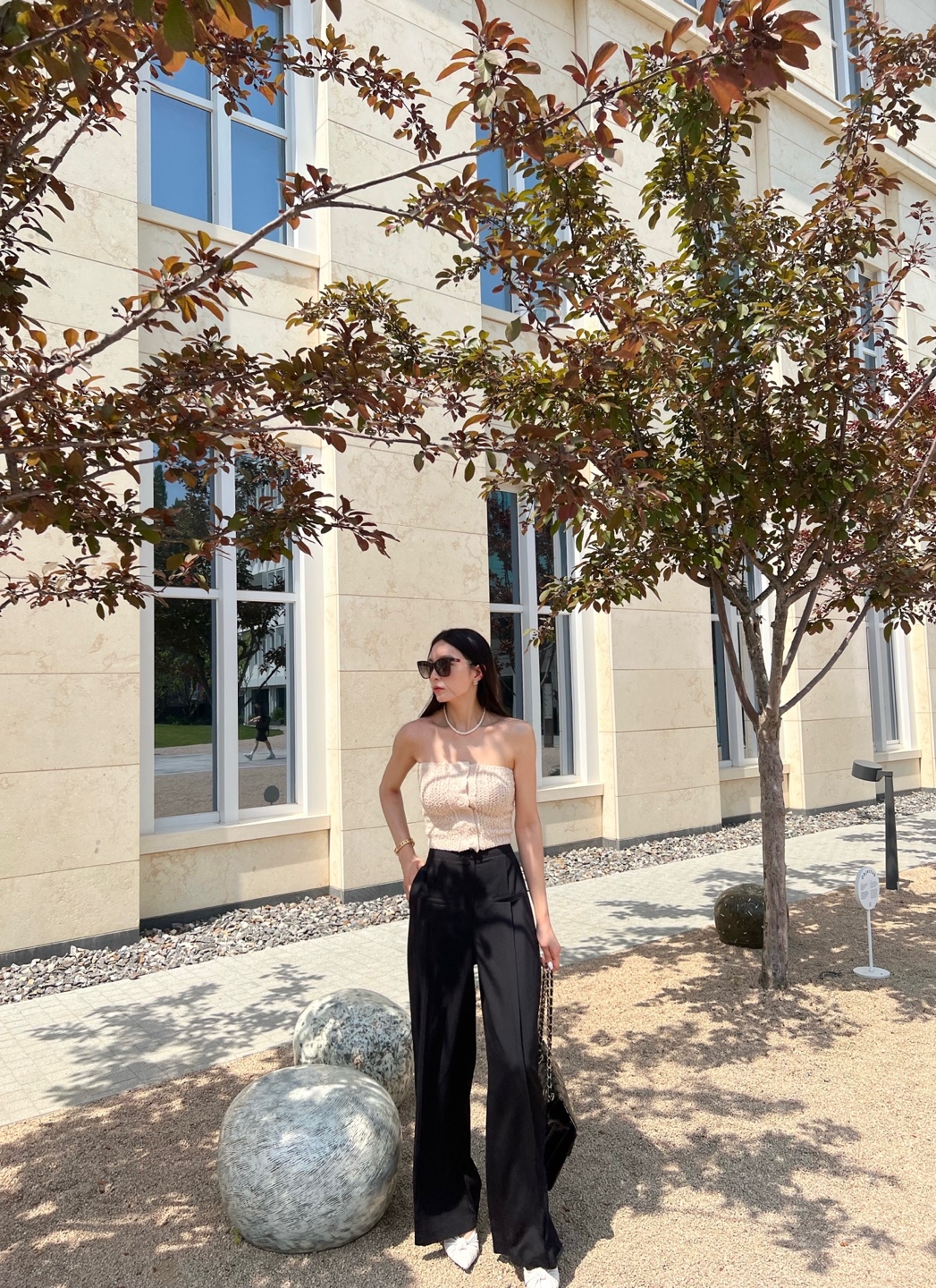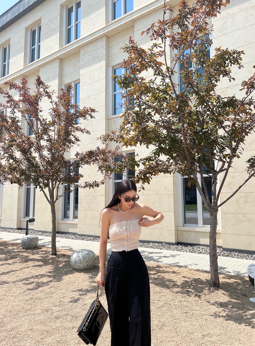 부드러운 파스텔 톤의 니트 탑이에요.